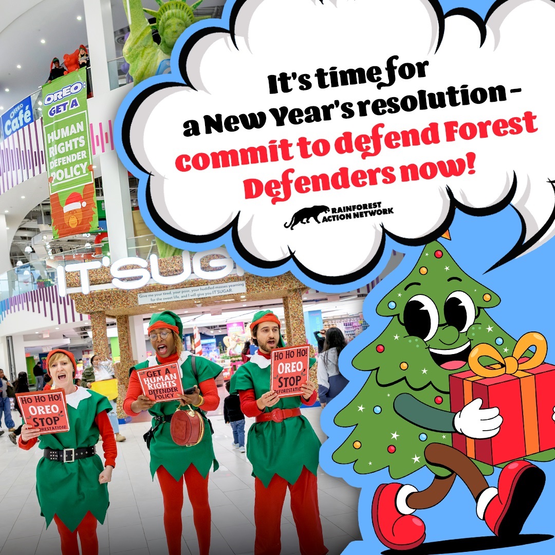 Last week, a group of North Pole Elves took over American Dream Mall, home to the world’s first-ever Oreo-themed café, to deck the halls with reminders of Oreo’s weak deforestation and human rights policies.